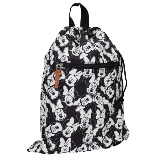 Ce sac de sport Minnie Mouse My Little Bag en polyester noir et blanc avec un imprimé Minnie Mouse et est pratique à transporter comme sac de rechange.