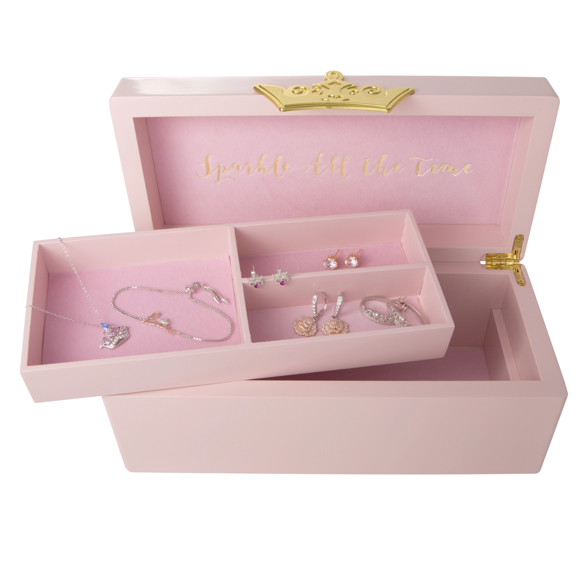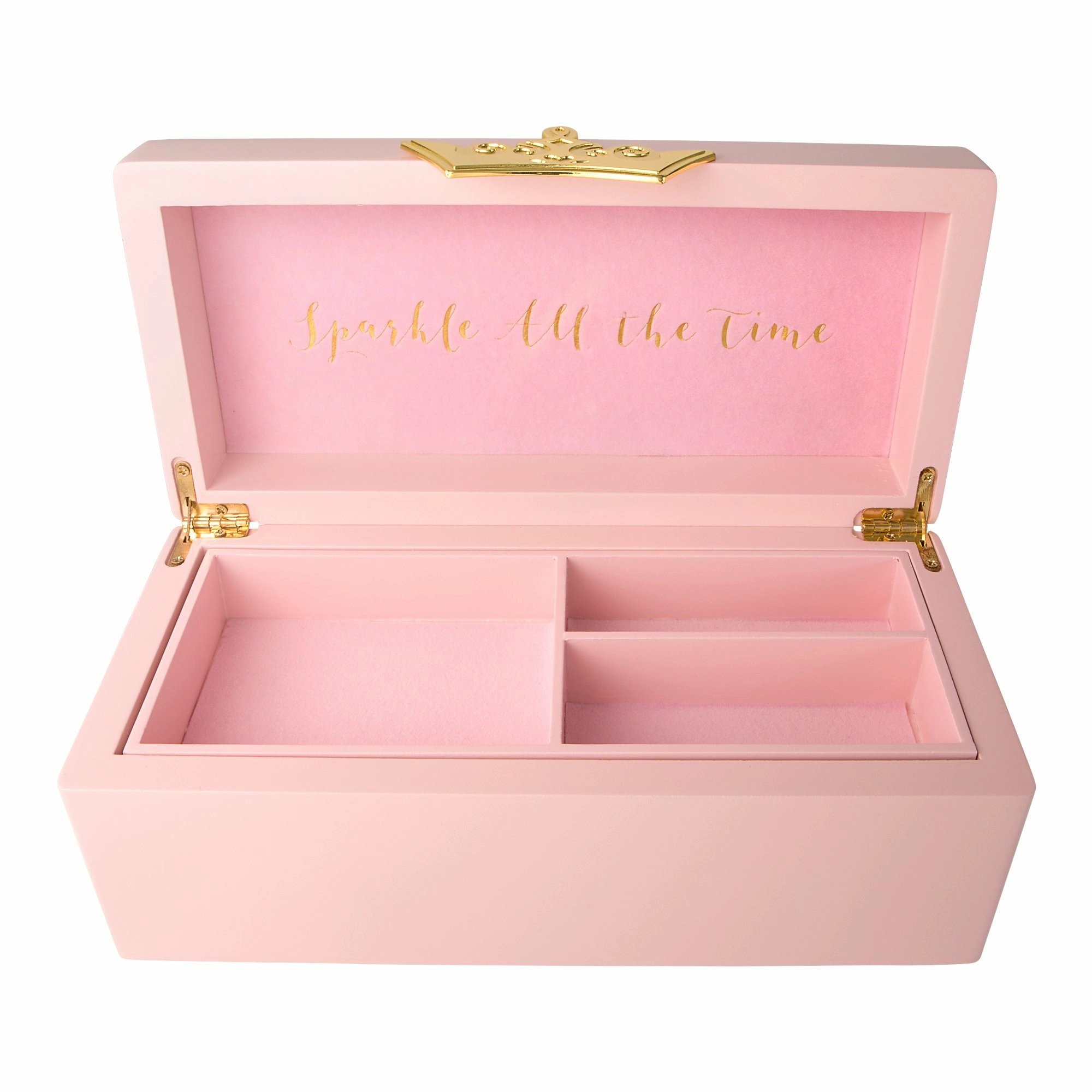 Cette boîte à bijoux officielle des Princesses Disney est le cadeau idéal pour tout fan de Disney ! Cette boîte à bijoux laquée rose haut de gamme est fabriquée en bois massif et dispose d'un couvercle à charnière et d'un fermoir à couronne de princesse plaqué or.A propos de cet articleBoîte à bijoux haut de gamme en bois massif laqué roseFermoir couronne de princesse plaqué orTexte "Sparkle all the time" à l'intérieur du couvercle