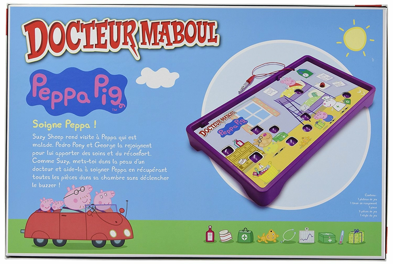 Suzy Sheep rend visite à Peppa qui est malade. Pedro Pony et George la rejoignent pour lui apporter des soins et du réconfort. Comme Suzy, mets-toi dans la peau d’un docteur et aide-la à soigner Peppa en récupérant toutes les pièces dans sa chambre sans déclencher le buzzer !