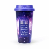 Cette tasse de voyage Doctor Who est le compagnon idéal pour les voyages dans l'espace! Il comporte un Tardis violet foncé avec la cita... Lire plus