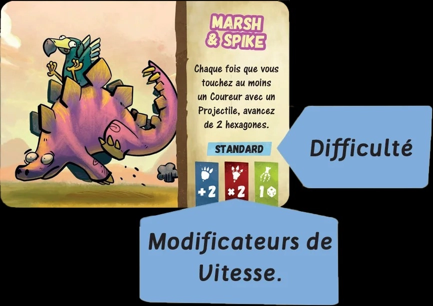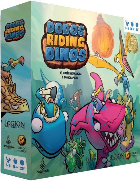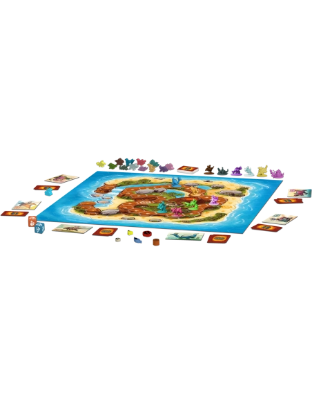 Choisissez votre figurine de Dodino favorite. Avancez avec les cartes de Mouvement bleues et rouges et résolvez leurs effets loufoques. Testez votre dextérité face à vos Rivaux en jetant des Bananes, en bousculant des Œufs de dodo ou en faisant tomber des météorites.