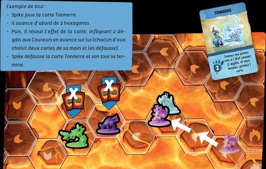 La partie se termine à la fin du round durant lequel au moins un Coureur a complété un tour de circuit et franchit la ligne d’Arrivée : le Coureur qui a dépassé l’Arrivée du plus grand nombre d’hexagones gagne !