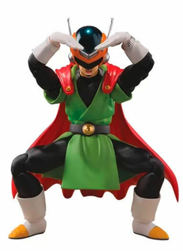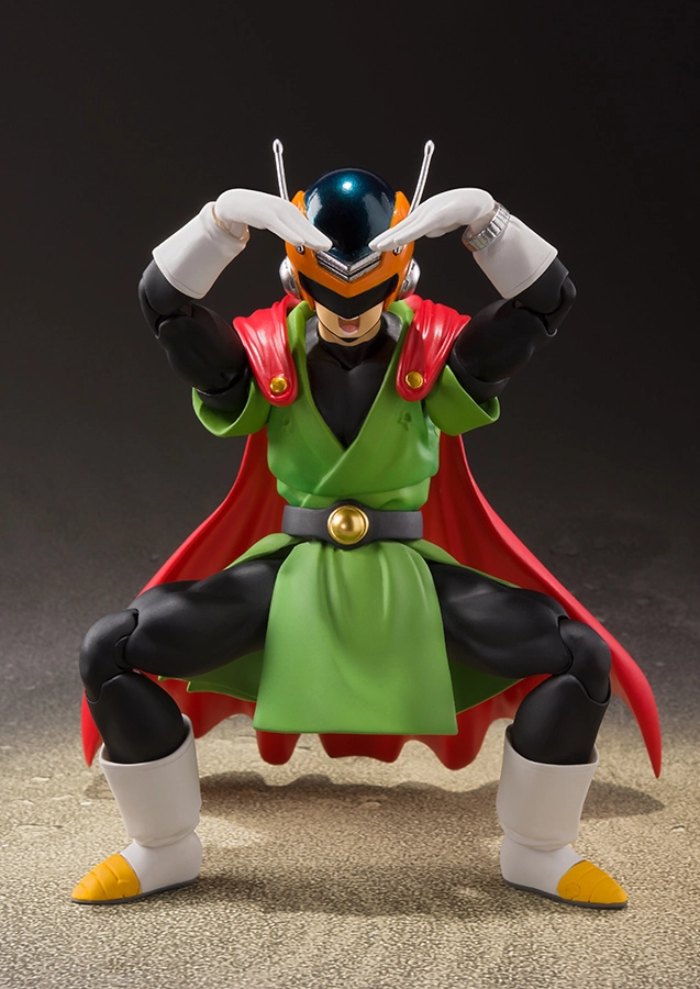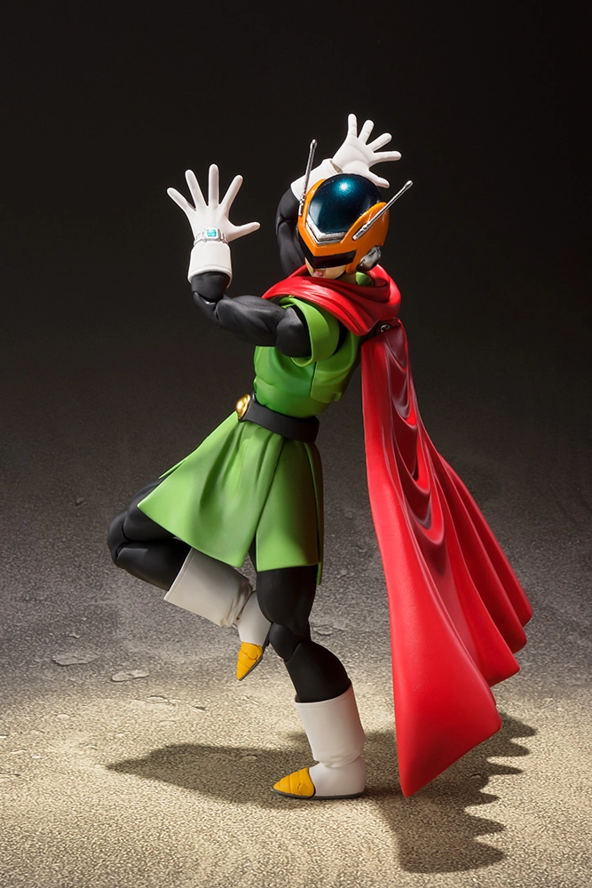 | Voici le Guerrier Intergalactique en S.H.Figuarts alias Son Gohan sous son costumer de Super Héro. Le Set comprend de nombreux visages, notamment démasqué, des mains interchangeables et il est possible d'enlever la cape. |