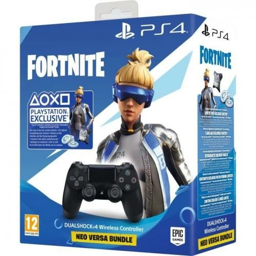 Pack contenant: une manette officielle Sony Noire + du contenu fortnite:un skin et 500 de la monnaie virtuelle de fortnite qui sont à télécharger avec un code fourni à l'intérieur
