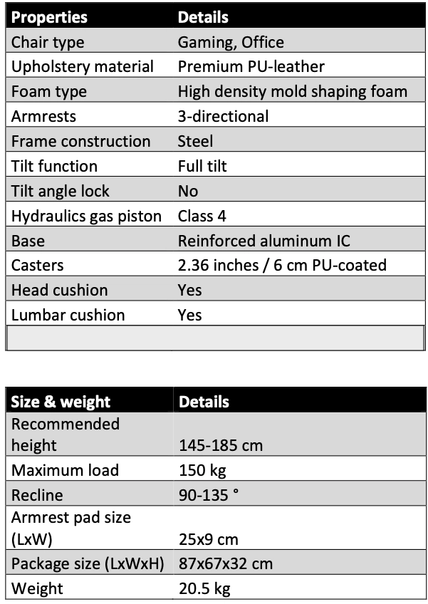 Le DXRacer Prince P08 est le successeur du best-seller Formula F08. Tous les composants et matériaux utilisés dans le fauteuil ont été soigneusement sélectionnés pour offrir une combinaison parfaite de qualité, de confort et d'options de personnalisation. Le siège est fabriqué en mousse froide haute densité et est recouvert d'un faux cuir véritable. La conception ergonomique a été améliorée pour offrir une meilleure expérience d'assise, que ce soit pour effectuer des tâches au bureau, pour supporter de longues sessions de jeu, ou pourquoi pas les deux. L'unité de commande conventionnelle vous permet soit de déverrouiller le siège, ce qui vous donne la possibilité de vous balancer d'avant en arrière, soit de verrouiller complètement le siège en position horizontale. Le dossier entièrement réglable, ainsi que l'appui-tête et les coussins lombaires inclus, permettent de personnaliser le fauteuil à l'infini pour trouver votre position assise préférée. Les accoudoirs 3D sont réglables dans trois directions différentes : de haut en bas, d'un côté à l'autre et d'avant en arrière. Le fauteuil est équipé d'un empattement en aluminium à 5 branches avec des bandes de couleur incrustées. Les roulettes de 6 cm sont fabriquées en plastique PU résistant et roulent en douceur sur les surfaces planes. L'élévateur à gaz certifié classe 4 a une capacité maximale de 150 kg et la hauteur recommandée est de 185 cm.