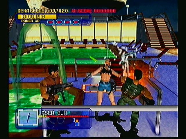 Dynamite Cop sur Dreamcast est un jeu d'action dans lequel vous incarnez un policier parmi l'élite, en charge de retrouver la fille du président kidnappée par des pirates. L'action se déroule d'abord à bord d'un bateau puis sur l'île qui sert de repaire aux dangereux pirates.