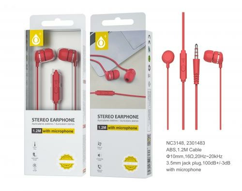 Ecouteur Stéréo intra-auriculaire avec micro rouge Informations : - Longuer : 1,2m - Prise Jack : 3,5mm - Design léger