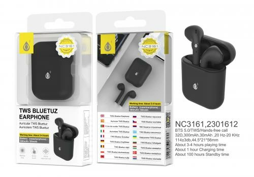 Ecouteurs bluetooth 5.0 tws purse (230mah) avec etui rechargeable (300mah) - noir - ne nc3161