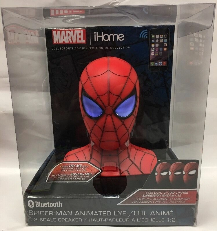 Superbe enceinte Bluetooth iHome Marvel - Spider-Man avec Yeux Animés proposée en série limitée pour les fans de Marvel, objet déco mais aussi enceinte qui diffusera votre musique sans fil, vous allez faire des jaloux !