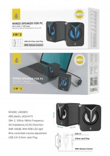 Enceinte filaire pc rgb-cable 1,1m-usb+jack-controle du volume-noir