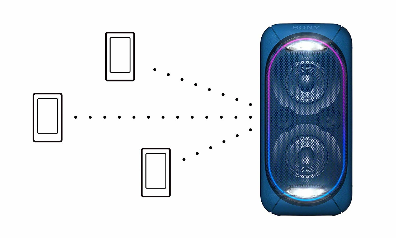 Avec l'application Sony | Music Center, choisissez les morceaux, contrôlez le son et créez des listes de lecture depuis un téléphone. Le plug-in Fiestable permet de contrôler la couleur des lumières et l'égaliseur ou d'activer le mode DJ, le tout en un geste du poignet grâce à la détection de mouvements.