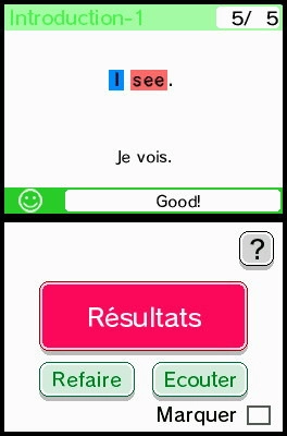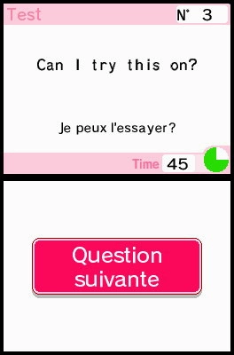 English Training : Progressez en Anglais sans Stresser sur DS est une application de langue anglaise ayant pour but d'améliorer le vocabulaire de base graduellement à travers une série de petits exercices de dictée. Un calendrier interne est inclus dans le programme, où vous pouvez tamponner chaque jour votre progression en anglais. Affrontez vos amis à travers deux modes de jeu grâce au téléchargement sans fil !