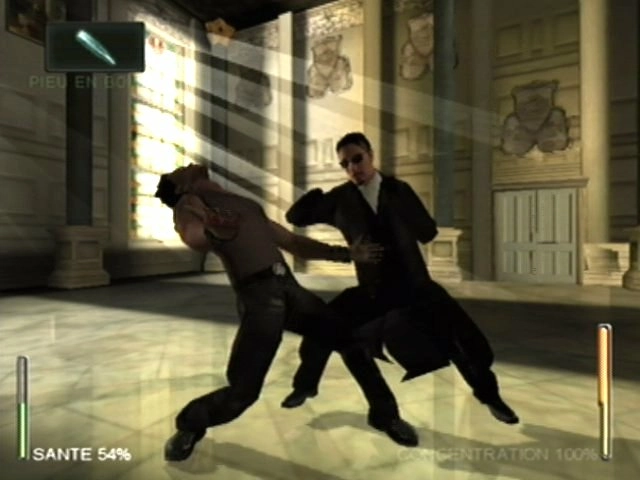 Enter The Matrix sur Gamecube. Parcourez ce jeu de tir à la troisième personne au ralenti en évitant les balles et piratez des ordinateurs pour obtenir des bonus. Le jeu vidéo Enter the Matrix suit une histoire inédite faisant le lien entre les films.