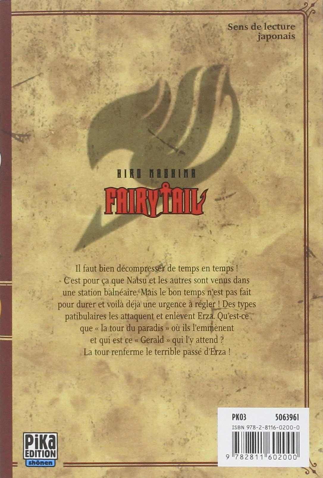 Il faut bien décompresse de temps en temps ! C'est pour ça que Natsu et les autres sont venus dans une station balnéaire.Mais le bon temps n'est pas fait pour durer et voilà déjà une urgence à régler ! Des types patibulaires les attaquent et enlèvent Erza. Qu'est-ce que " la tour du paradis " où ils l'emmènent et qui est ce " Gerald " qui l'y attend ? La tour renferme le terrible passé d'Erza !