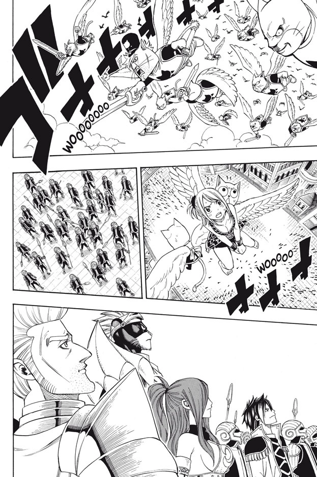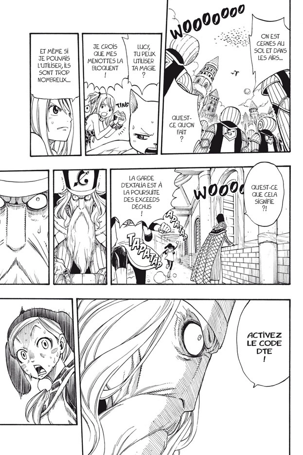 Natsu, Lucy, Wendy, Happy et Carla ont découvert la vraie nature du monde d’Edolas. Les exceed ont fait emprisonner nos deux chasseurs de dragons afin de leur voler leurs pouvoirs magiques. Mais c’est sans compter sur l’aide d’Happy et Carla qui réussissent à sauver in extremis Lucy qui était sur le point de se faire exécuter par Erza Knightwalker. Pourchasser par les soldats de la reine, nos héros se retrouvent encerclés…