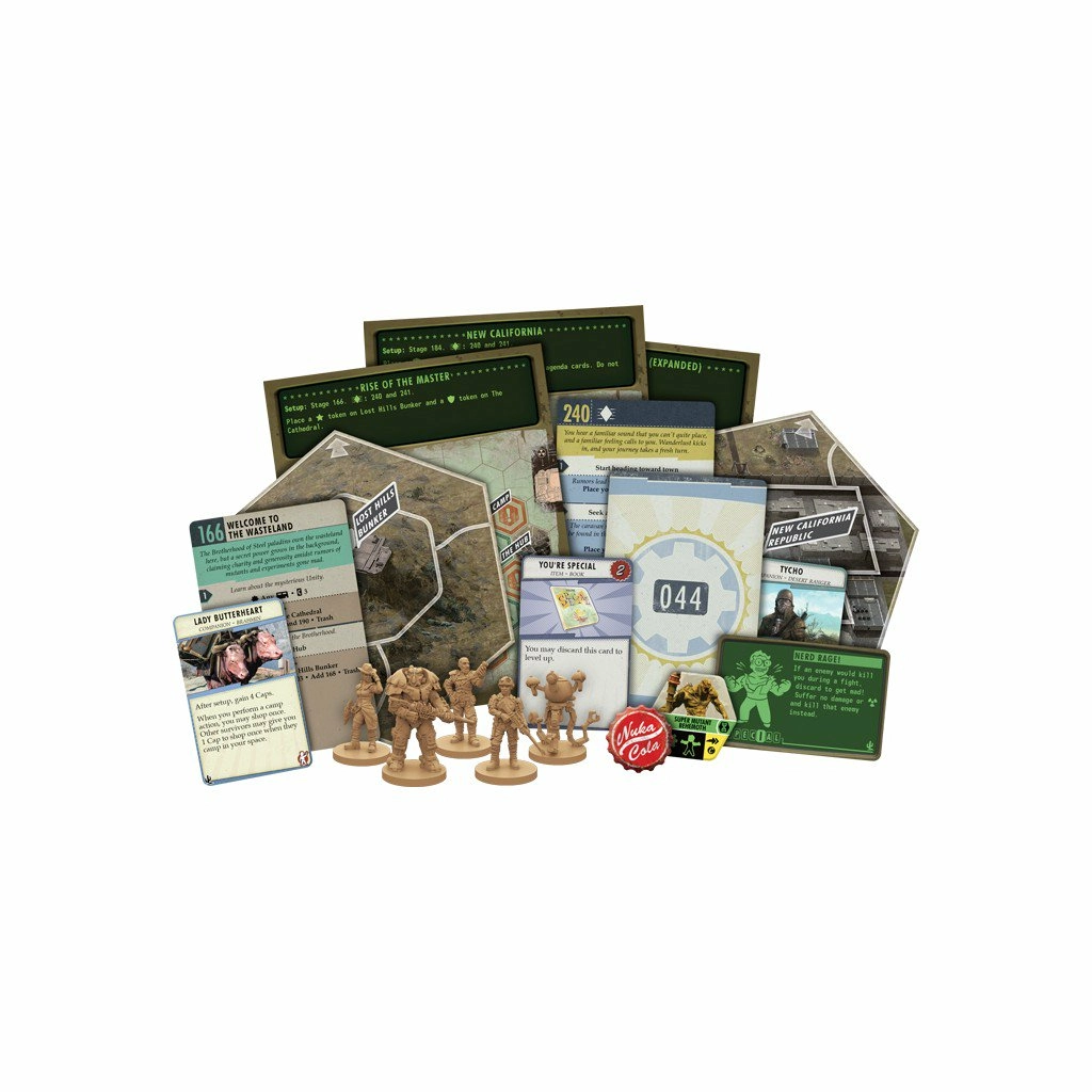 Cette extension New California apporte de nouvelles quêtes, des compagnons, cinq nouveaux personnages et des objets à Fallout : The Board Game. De plus, vous pouvez vous promener à travers douze nouvelles tuiles qui étoffent les scénarios du jeu original ou vous diriger vers la Nouvelle Californie ensoleillée et visiter certains des endroits les plus mémorables de la série Fallout.
