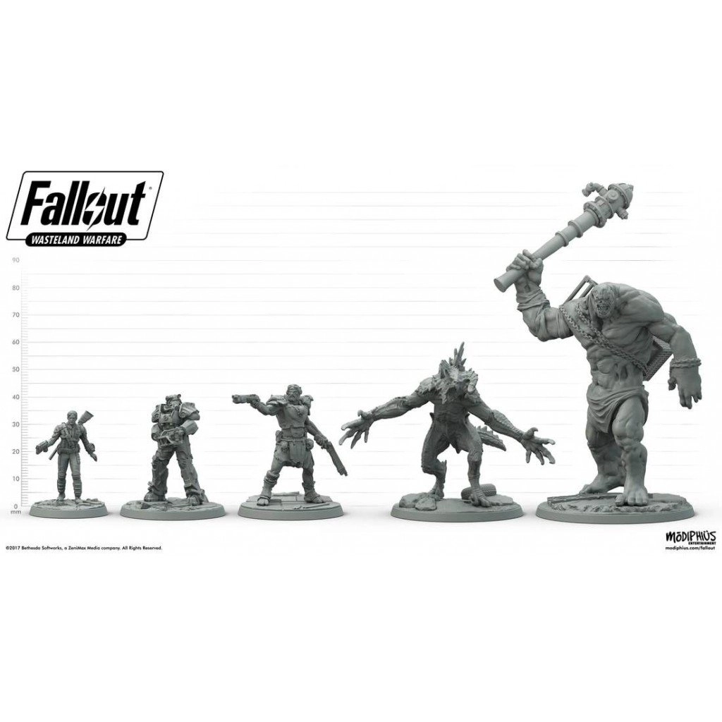 Dans Fallout : Wasteland Warfare, les joueurs construiront leur propre team à partir d'un large éventail de factions, d'alliés et de personnages emblématiques de la série Fallout, et joueront des parties apocalyptiques de 3 à 30 figurines de haute qualité à l'échelle 32 mm dans une grande variété de décors et de bâtiments emblématiques, de la Fusée rouge aux collines du Sanctuaire, en passant par les distributeurs automatiques de Nuka-Cola et les voitures accidentées.