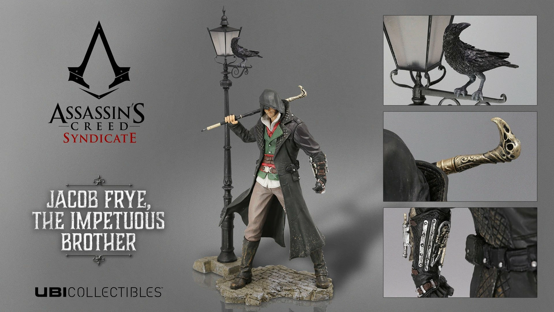 UBI Collectibles proposera à la vente en Octobre 2015, deux figurines Assassin’s Creed ultra détaillées. La première, Jacob Frye, The Impetuous Brother, représente Jacob dans une pose guerrière dans les rues de Londres, armé de son Gantelet fidèlement reproduit et de la Canne Épée. La seconde, Evie Frye, The Intrepid Sister, représente la fougueuse et vaillante sœur de Jacob. Une lithographie spéciale accompagnera également chaque figurine. En associant, ces deux figurines les joueurs pourront former le diorama “The Wise and Wild Twins”.