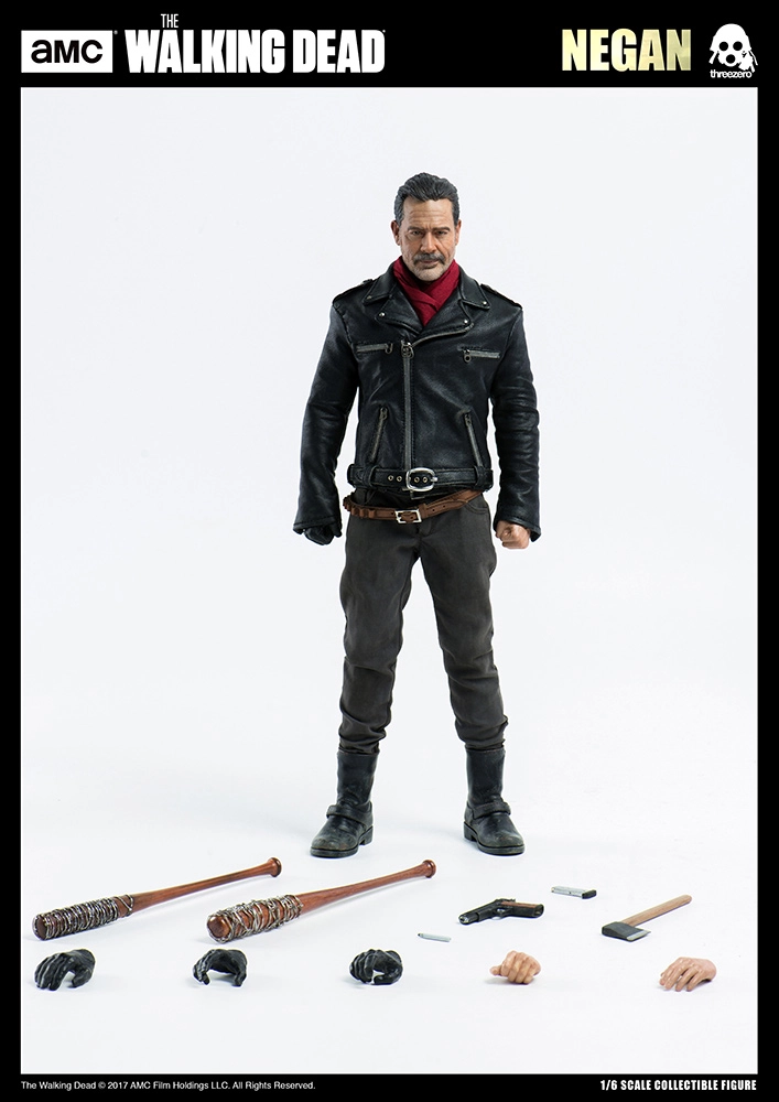 Figurine de Negan produite par Three zero mesurant 30 cm environ Plusieurs mains echangeables, veste en faux cuir, colt 1911, deux... Lire plus