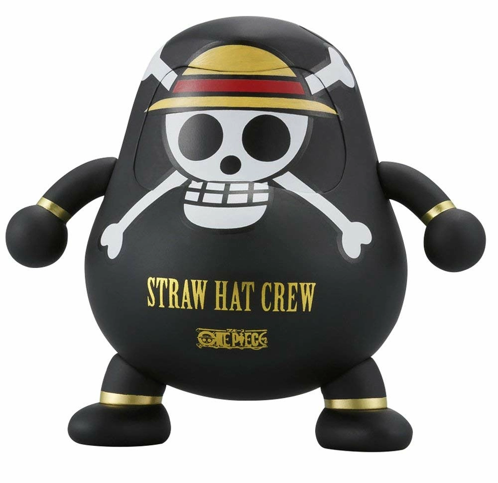 Daruma Club est un format de ligne de la figure des poupées daruma japonais qui ont poussé les bras et jambes. Debout autour de 90 mm de haut, ces figurines culbuto sont conçus en collaboration avec différents personnages et des artistes. One Piece B est fini dans une couleur noire mat doux. La face traditionnelle daruma est remplacé avec le chapeau de paille Drew pour tête de mort et tibias croisés design avec lettrage doré métallisé sur le devant et le dos.
