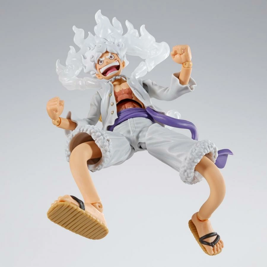 Pour enrichir vos mises en scène, la figurine est livrée avec plusieurs visages et mains interchangeables, ainsi qu’un socle spécial pour une stabilité optimale. En bonus, le coffret contient également des pièces de visage additionnelles pour la figurine S.H.Figuarts Monkey D. Luffy Gear 5 (vendue séparément), un ajout apprécié des collectionneurs souhaitant renforcer leur diorama.