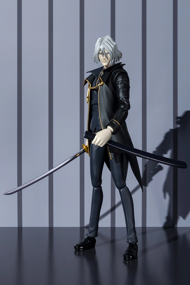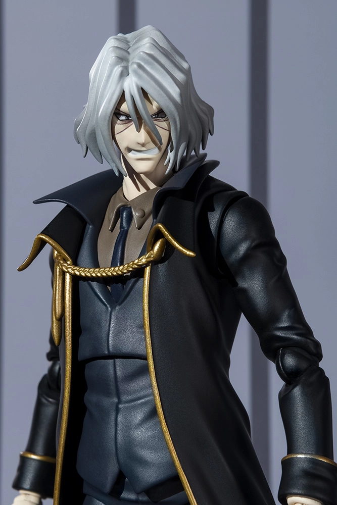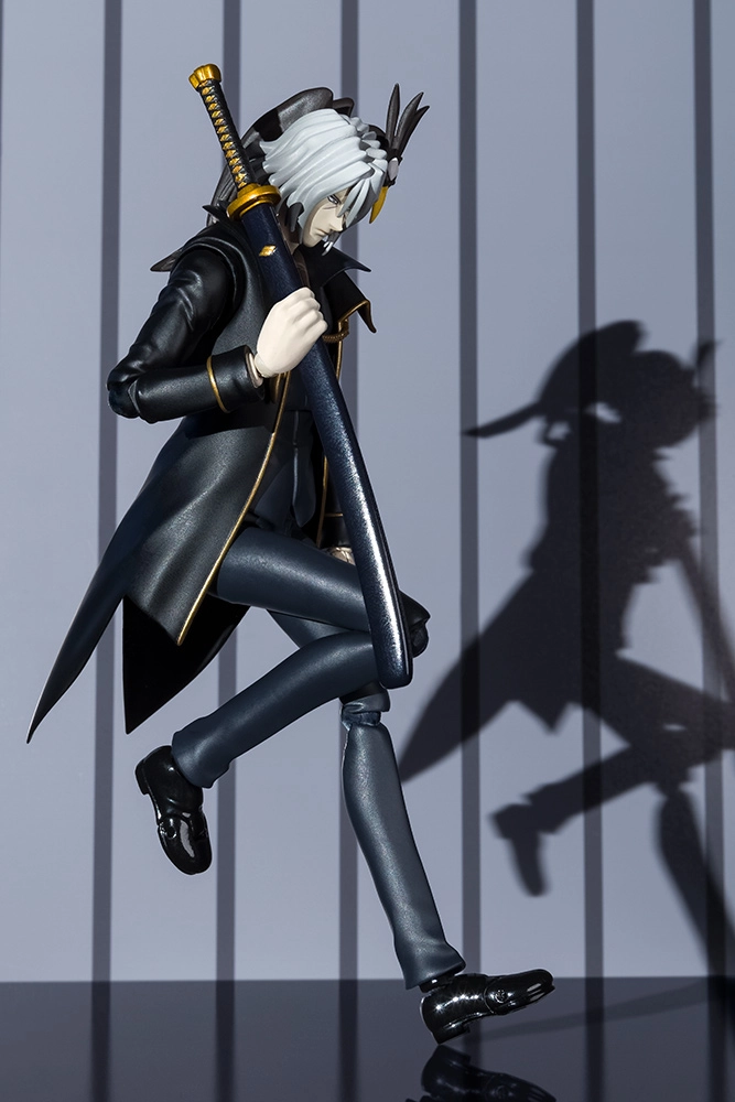 2eme personnage tiré de Cowboy Bebop à sortir en S.H.Figuarts, le rival de Spike : Vicious. Le set inclus des mains et visages interchangeables ainsi que son épée, couteau et oiseau.