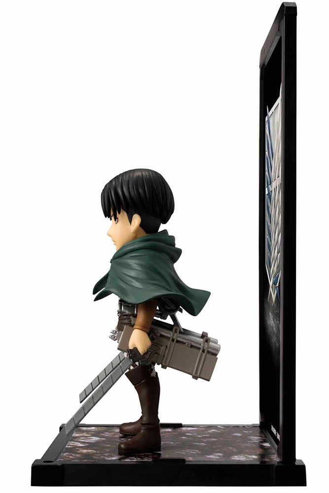 La gamme TAMASHII BUDDIES s'agrandi avec une des plus grosse licence du moment : L'attaque des titans et parmi les personnages les plus emblématiques : Levi Ackerman. Comme pour les autres Buddies, Levi est mis en valeur avec un décors de fond et un cadre.