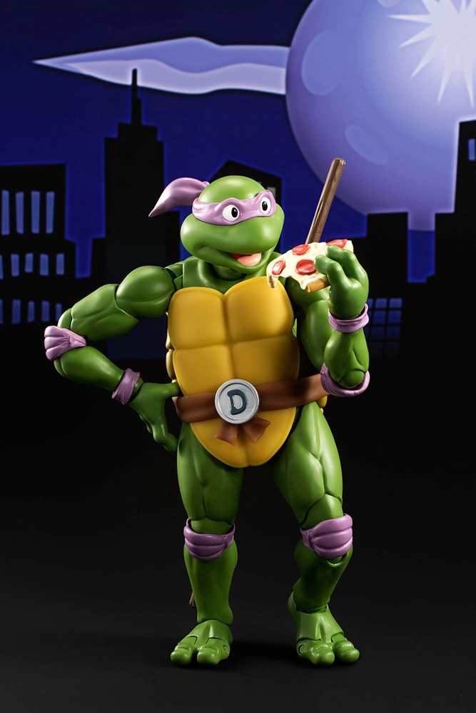 La Figurine Tortues Ninja TMNT Donatello, l'inventeur et cerveau du groupe mesure 15cm et comprend : son célèbre bâton de combat, plusieurs visages, 6 mains interchangeables et pizza. Certainement les plus belles Tortues Ninjas sur le marché !