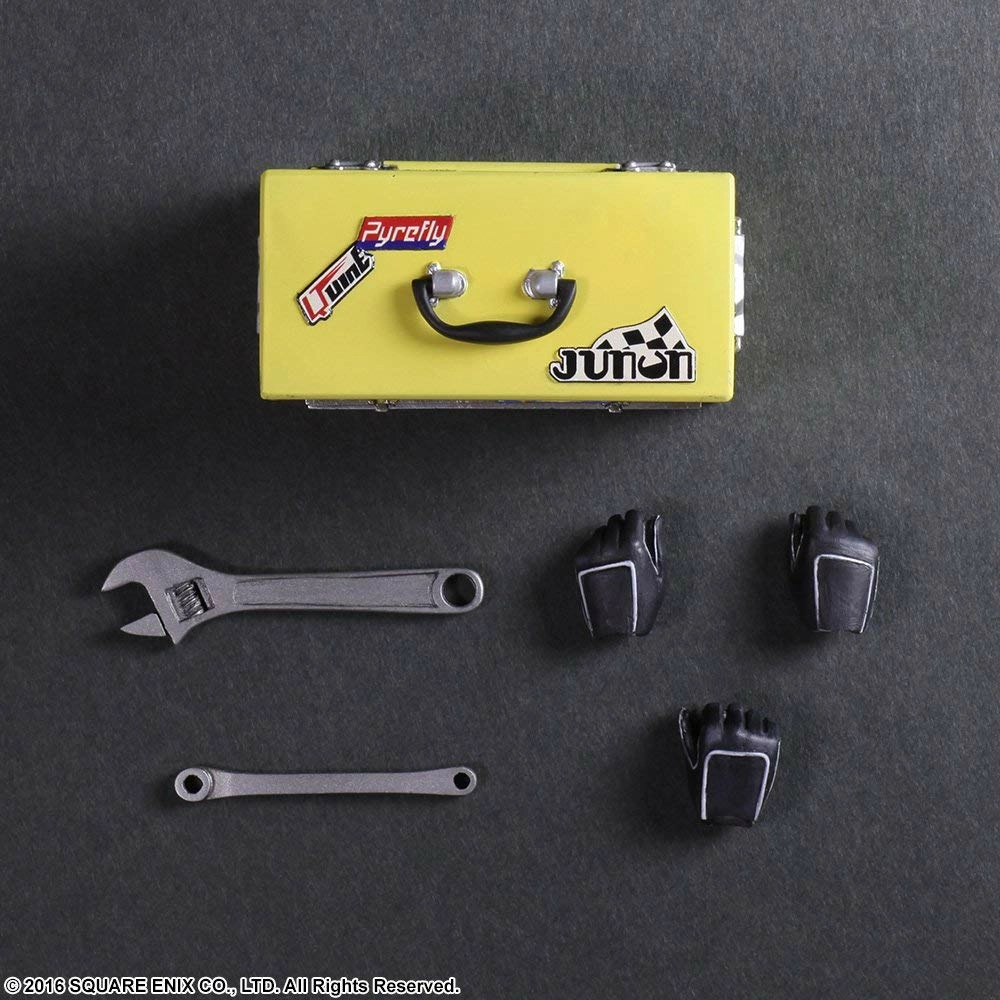 Cindy Aurum, de Final Fantasy XV fait ses débuts dans le gamme Play Arts KAI > Sont inclus: Une caisse à outils et 3 mains (2 Droites + 1 Gauche) > Dimensions figurine: 11.8cm x 5.8cm x 28cm