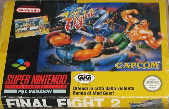Dans Final Fight 2 sur Super Nintendo, le gang Mad Gear est de retour et a cette fois-ci kidnappé la fiancée, le père et le mentor de Guy, l'un des personnages du premier épisode sorti en 1991. Vous avez le choix entre Maki, la soeur de la fiancée de Guy, Mike Haggar et Carlos Miyamoto pour partir à la recherche du Mad Gear en traversant les pays et les continents. Des armes et des bonus sont cachés dans des caisses ou barils pour vous aider à éliminer les membres du gang.