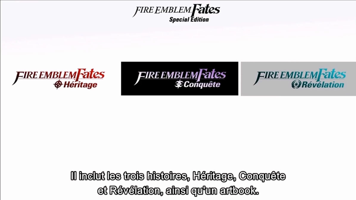 - Les trois jeux Fire Emblem Fates Héritage et Fire Emblem Fates Conquête ainsi que le DLC Fire Emblem Fates Révélation en une seul cartouche,