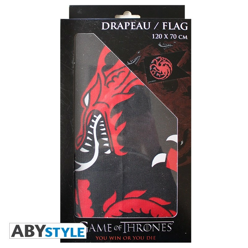 Fans des Targaryen, arborez les couleurs de votre maison préférée avec ce drapeau Game of Thrones par ABYstyle.- Dimensions : 120 x 70 cm- Triple épaisseur de tissu et motifs imprimés des 2 côtés- Possibilité de brandir le drapeau avec ses 2 œillets en métal- Lavable en machine- Vendu dans un étui refermable et brochable, haut de gamme.