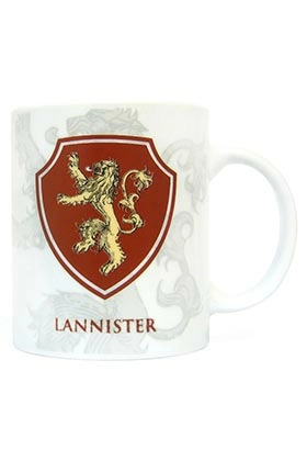 Mug (grande tasse) au décor imprimé haute qualité. Modèle sous licence officielle.Mug GAME OF THRONES, modèle Shield LannisterMug translucide de haute qualitéHauteur : environ 10 cm - Diamétre : environ 8 cmContenance : 30cl - 300ml100% OfficielLa Maison Lannister est l'une des grandes maisons de Sept Couronnes, et la maison principale des terres de l'Ouest. Leur siège est Castral Roc, mais il existe une autre branche qui réside à Port-Lannis. Leur blason est un lion d'or rugissant sur champ écarlate. Leur devise officielle est « Je rugis ». Cependant, leur devise non officielle, aussi bien connue, est « Un Lannister paie toujours ses dettes ». LeGouverneur de l'Ouest est un Lannister par la tradition.Blond, grand et beau, les Lannister contiennent le sang d'aventuriers Andal qui a sculpté un royaume puissant dans les collines et les vallées de l'ouest. Grâce à la lignée féminine, ils se vantent de descente de Lann le Futé, l'escroc légendaire de l'Âge des Héros qui a dupé les membres de la Maison Castral en leur prenant Castral Roc à l'époque des Premiers Hommes.Les Lannister ont régné entant que Roi du Roc jusqu'à la Conquête des Targaryen, mais ils ont put conservés le titre de suzerains des terres de l'Ouest. La maison a connu des moments difficiles lors du règne de lord Tytos, mais le pouvoir de son ancienne gloire a été repris grâce à son fils, lord Tywin. Sa filleCersei est la reine du roi Robert Baratheon, tandis que son jumeau Ser Jaime est un chevalier de Garde Royale de Robert. Les membres de la famille ont tendance à avoir des cheveux d'or et des yeux vert émeraude.