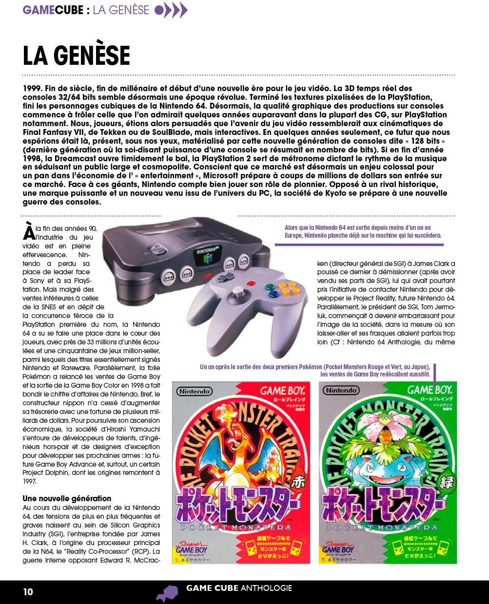 Elle a succédé à la Nintendo 64, source de division au sein des joueurs et précédé une Wii à l’approche extrêmement grand public. Elle a surpris par son design atypique, bluffé les joueurs par ses graphismes avant-gardistes, provoqué nombre de nuits blanches et marqué le retour des éditeurs japonais en force. Petite par sa taille, grande par sa puissance, la GameCube a une place bien à part dans le cœur des joueurs, avec une logithèque variée et abondante en hits exclusifs.