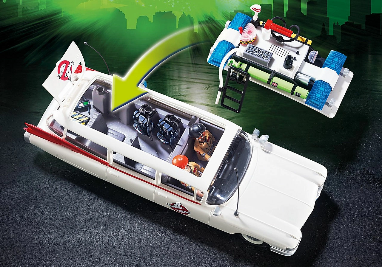 - 4 personnages Ghostbusters peuvent monter à bord du véhicule Ecto-1, avec leurs sacs à dos Proton Packs, les pièges à fantômes et d'autres équipements.