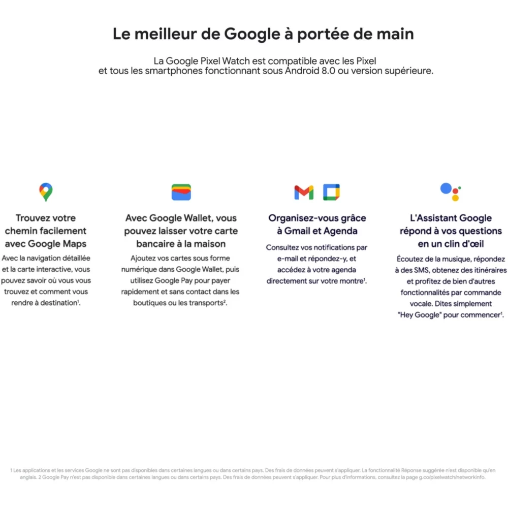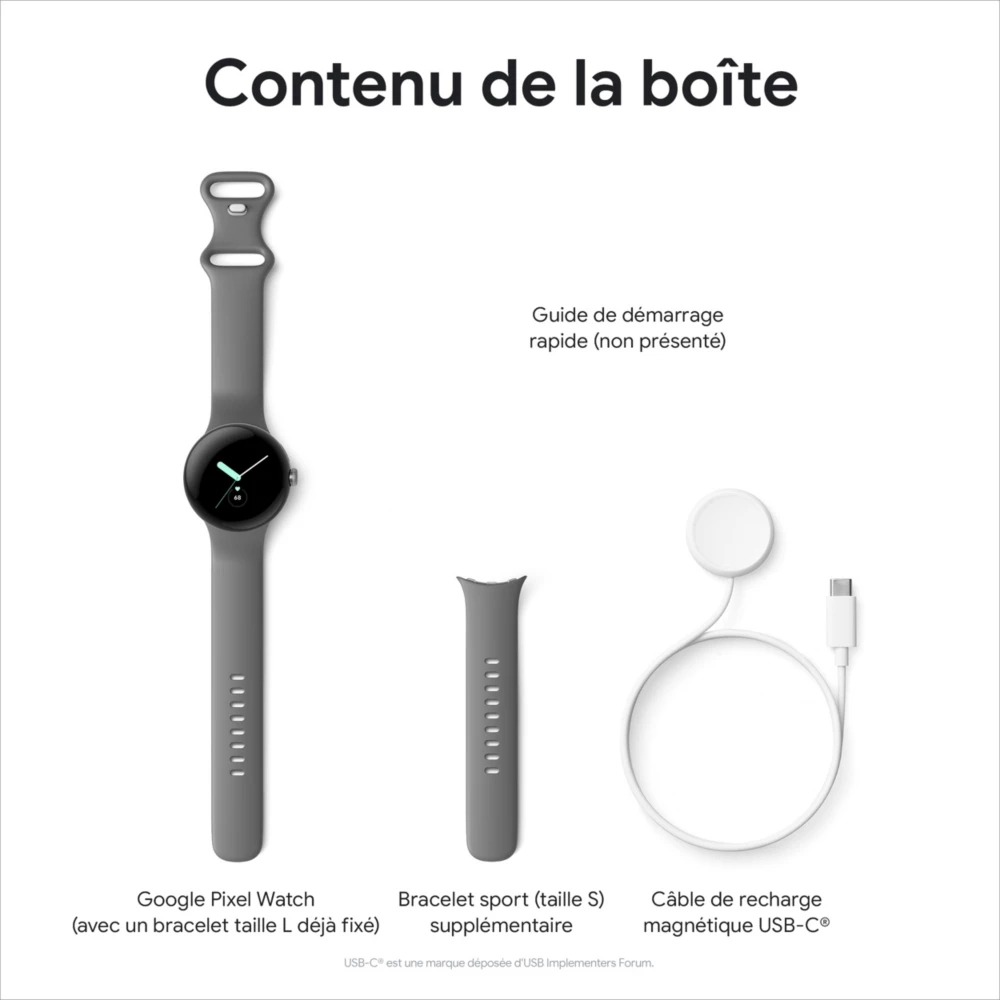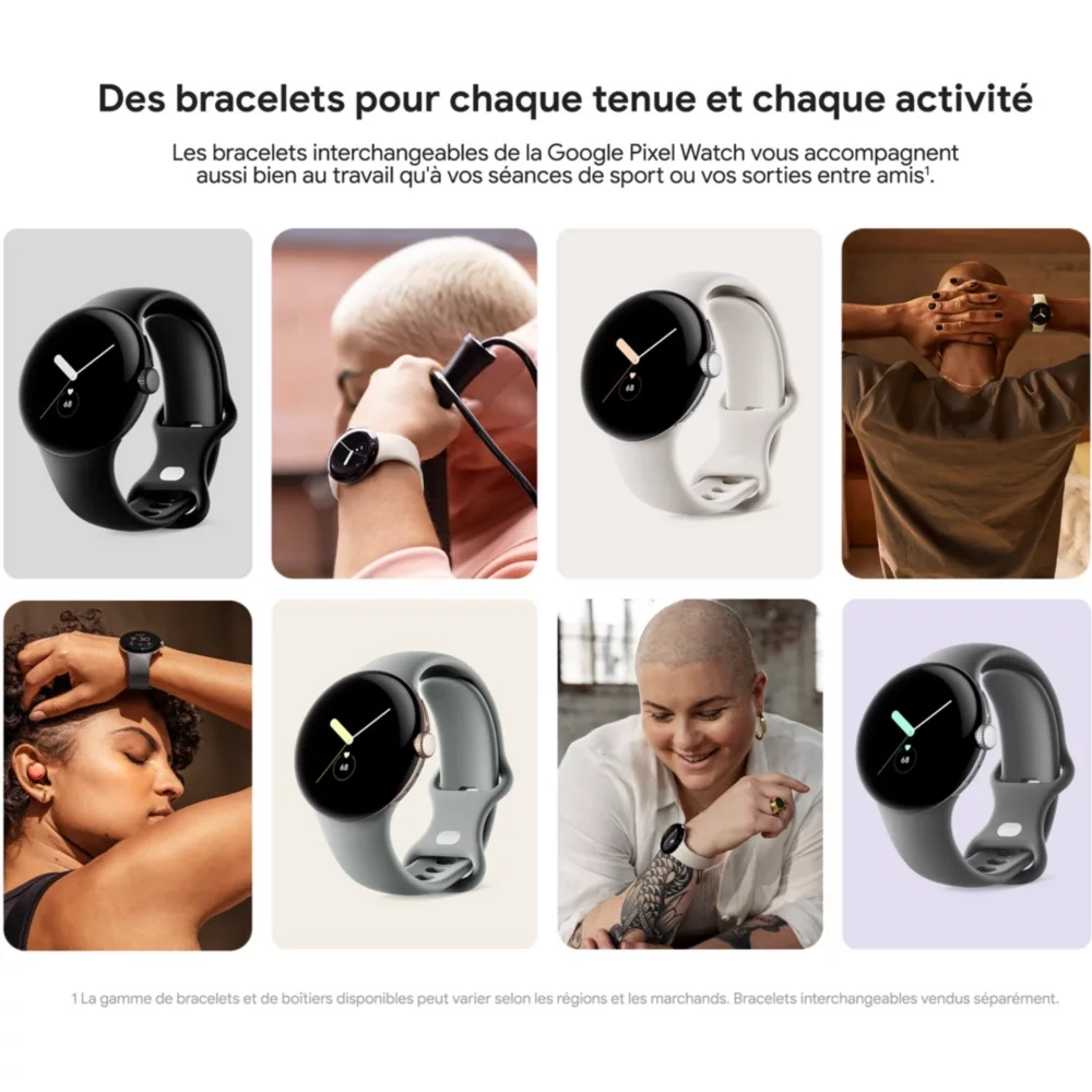 Google Pixel Watch Montre connectée Android avec suivi et analyse des activités Montre de suivi de la fréquence cardiaque Boîtier Noir Mat/bracelet sport Noir Volcanique.