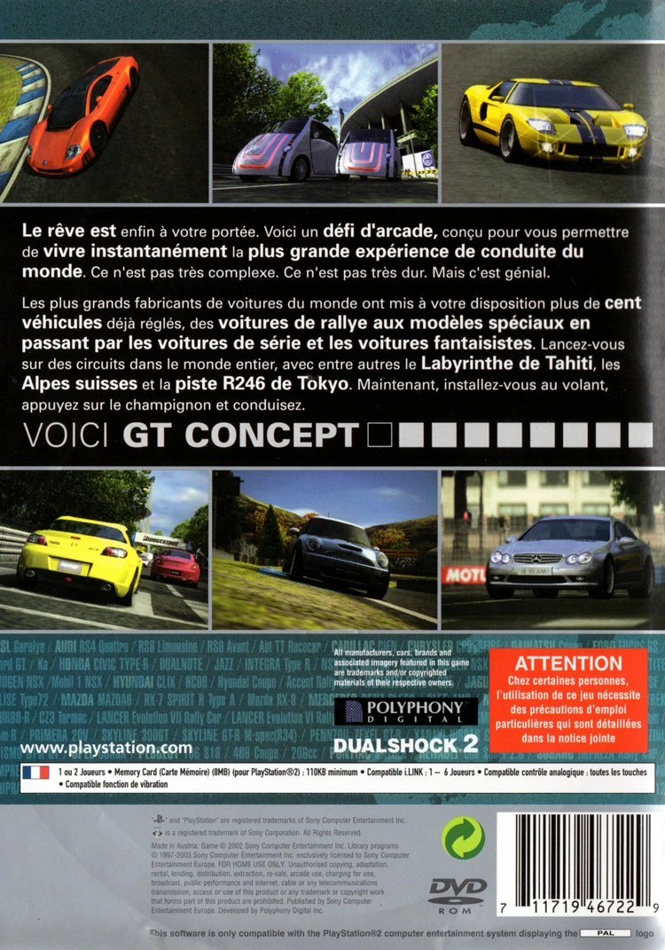 Gran Turismo Concept 2002 Tokyo-Geneva édition Platinum est un jeu de courses sorti sur Playstation 2.