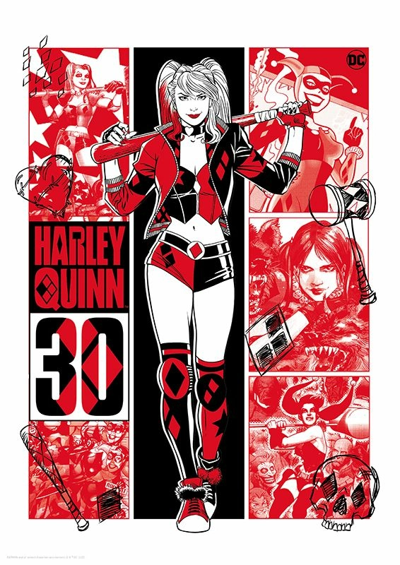 Célébrez le 30e anniversaire de Harley Quinn avec cette impression d'art en édition limitée produite sur du papier texturé de 300 g/m², numérotée individuellement à la main, seulement 995 dans le monde entier et fournie avec un certificat d'authenticité. Mesure 41,91 x 29,72 cm.