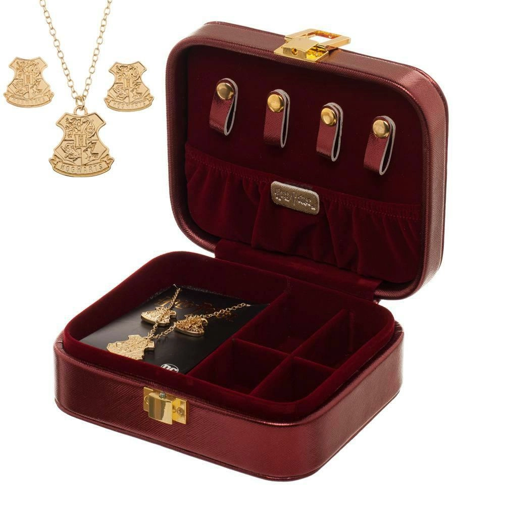 HARRY POTTER Boîte à Bijoux et Boucles D´oreille + Collier Hogwarts