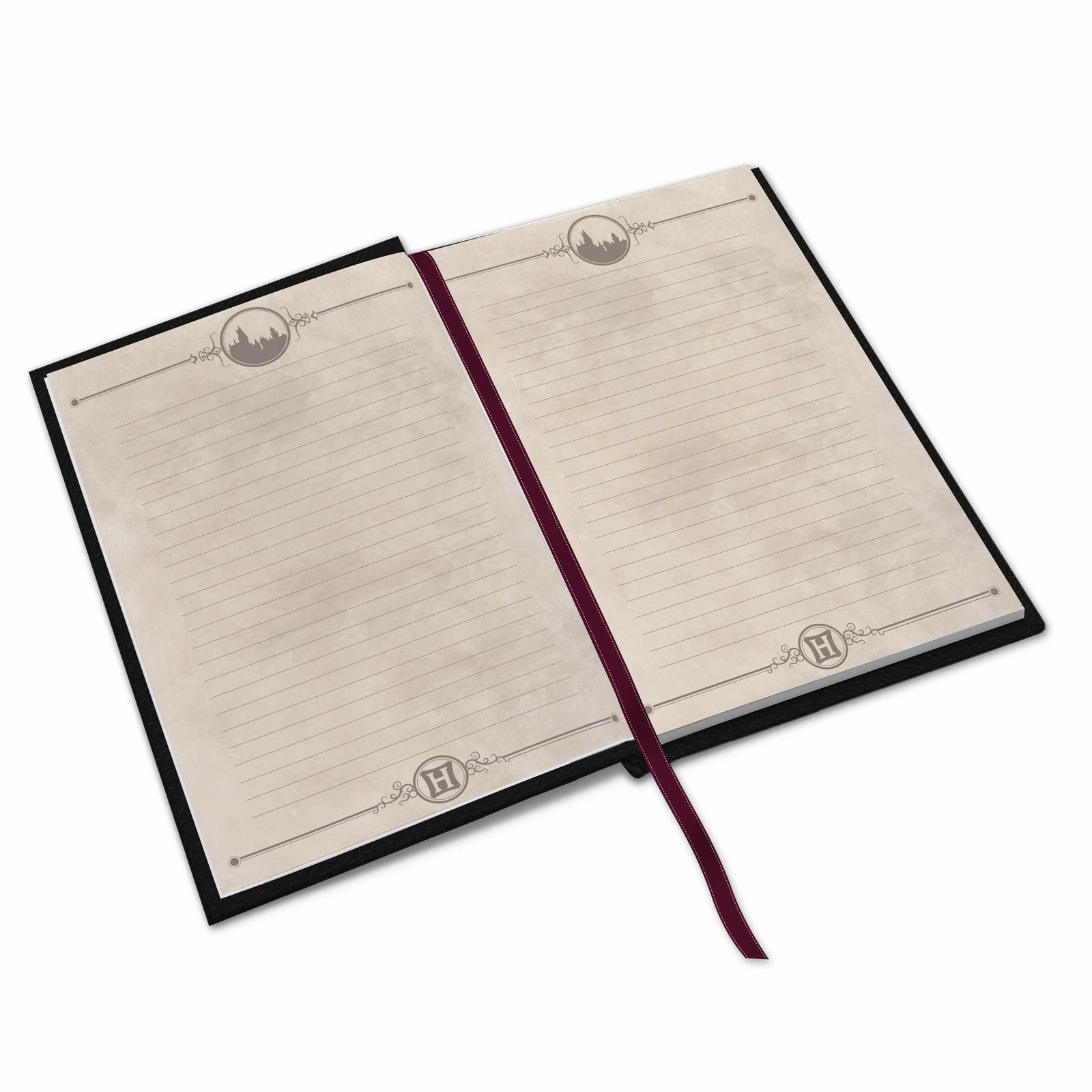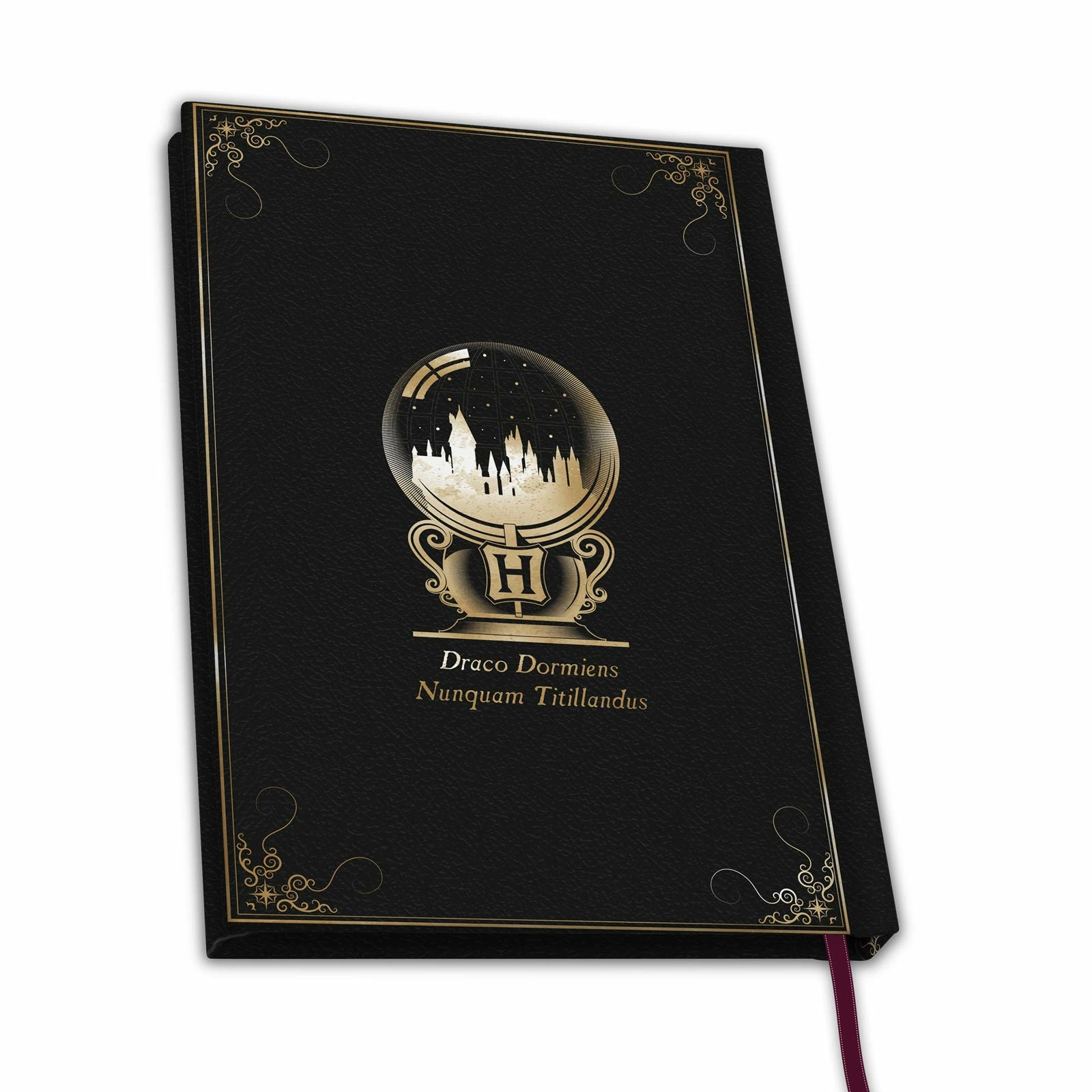 Son design élégant et raffiné aurait certainement plû à Harry Potter... Pour écrire vos tâches, entâmer l'écriture d'un roman ou tout simplement noter vos pensées, votre cahier premium Hogwarts par ABYstyle vous suivra partout !- Couverture cartonnée, texturée avec dorure.- Signet marque page- Reliure en dos carré collé et signet- Matière : papier- Tranche dorée- 180 pages, 90 gr, chaque pages imprimées en 4C ; Impression intérieure haute qualité. Motifs sur chaque page- Dimensions : H. 21,7 cm x 15,5 cm