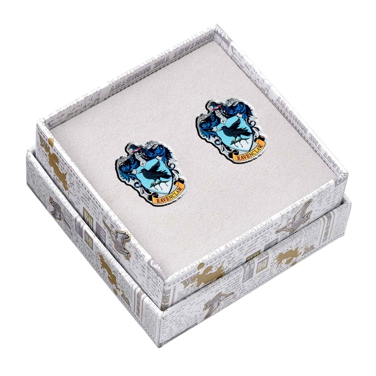 L'écusson de la célèbre maison de l'école de sorcellerie Poudlard, fondée par Rowena Serdaigle.Chaque bouton de manchette mesure environ 20 mm de hauteur et 17 mm de largeur.Les boutons de manchette sont plaqués argent.Ces boutons de manchette sont livrés dans une boîte cadeau officielle de la marque Harry Potter.