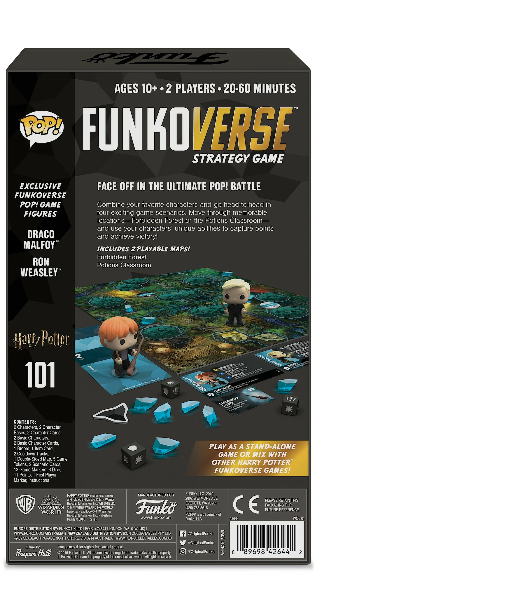 Affrontez l'ultime pop ! Battle - dans le jeu de stratégie de l'univers - Harry Potter #101, tu vas associer tes personnages préférés et t'affronter dans quatre scénarios de jeu passionnants. Déplacez-vous dans des lieux mémorables - la salle des potions et la Forêt interdite - et utilisez les capacités uniques de vos personnages pour gagner des points et remporter la victoire !Points fortsJeu de stratégie léger. Jouez comme un jeu autonome ou mélangez-le avec d'autres jeux du Funkoverse Harry Potter.Comprend : 2 cartes jouables - La salle des potions et La Forêt interdite, ainsi que 2 figurines exclusives Funkoverse Pop ! Game exclusives.Conseillé aux personnes âgées de 10 ans et plus.Nombre de joueurs : 2 joueursDurée du jeu : 20-60 minutesEdition française