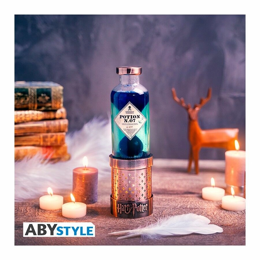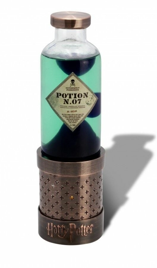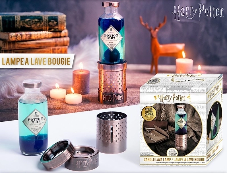 Bienvenue à votre tout premier cours de Potions ! Premier sujet : la Potion N°7. Le professeur Rogue ne devrait pas être trop sévère avec vous cette fois-ci : il suffit de placer une bougie dans le socle et l’allumer pour que des bulles se forment ! Vous n’aurez alors plus qu’à regarder les bulles circuler dans votre magnifique lampe à lave Harry Potter !
