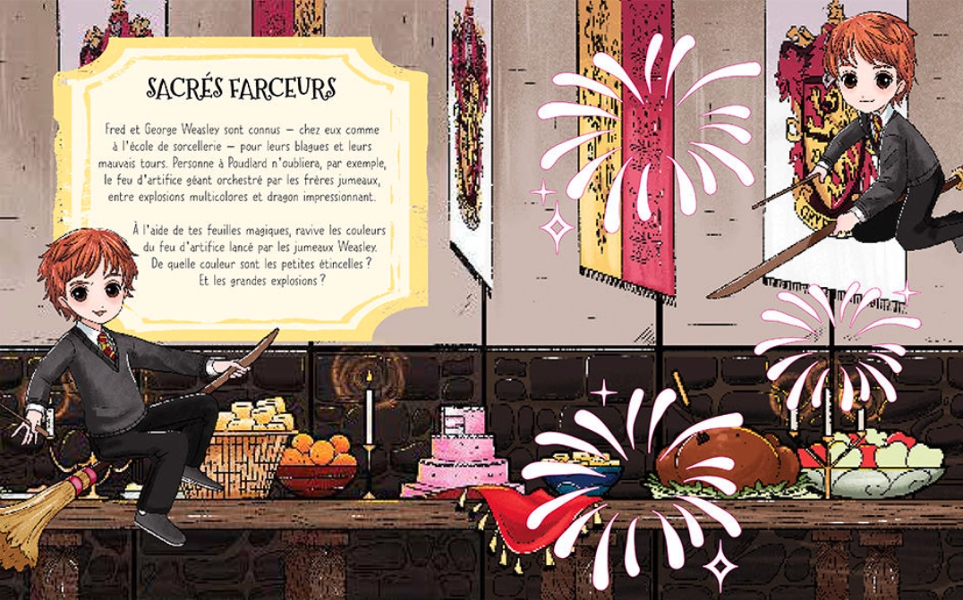Les plus belles scènes des films Harry Potter dans un grand livre d'activités magique et scintillant !Choisir sa maison, imaginer sa baguette, inventer une potion ou se promener sur la carte du Maraudeur...
