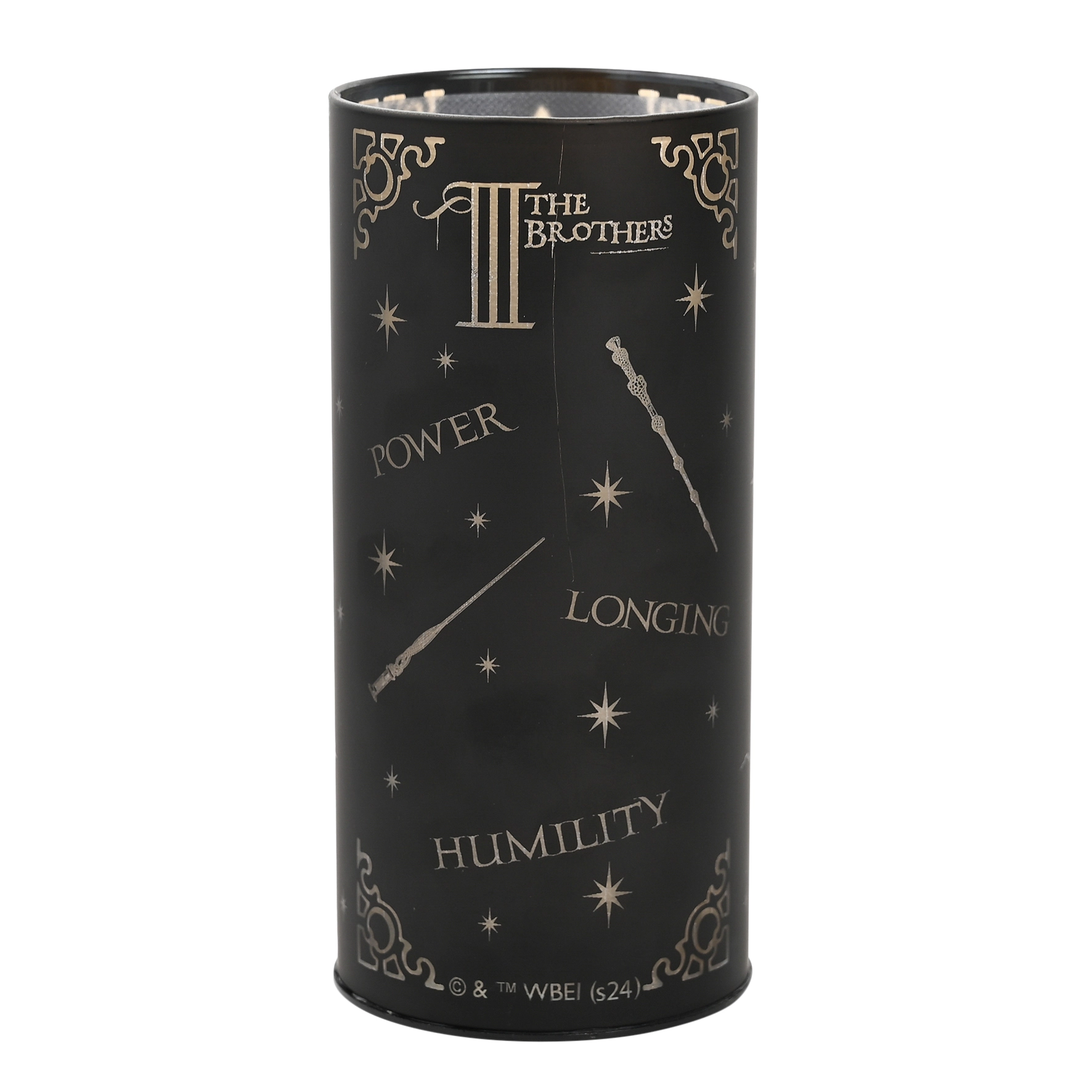 "Illuminez votre amour pour le monde des sorciers avec ce tube lumineux Les reliques de la mort, de Harry Potter Dark Arts by WARNER BROS®.Fabriqué à partir d'un verre de haute qualité, ce tube enchanteur présente une finition imprimée captivante qui vous transporte dans le royaume magique d'Harry Potter. Il est orné d'un noir profond et de décorations Harry Potter complexes. Illuminez votre espace et embrassez la mystique de la magie noire avec cette pièce décorative captivante. Besoin de piles 3xAA non incluses.Emballé dans une boîte fermée de 4c."