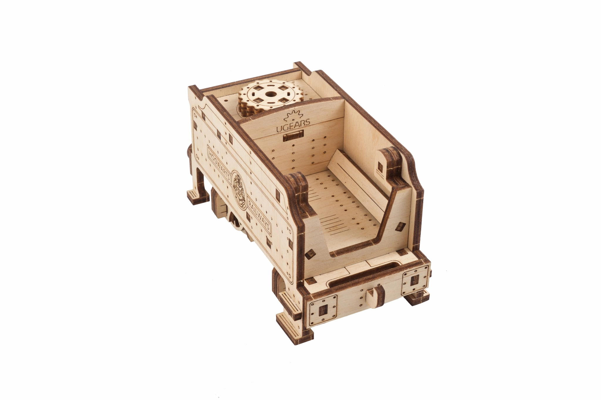 Pénétrez dans le monde des sorciers et rejoignez Harry, Hermione et Ron pour un voyage passionnant à bord du PoudlardTM Express grâce à ce modèle réduit spécial d'Ugears. Partant de la gare de King's Cross à Londres à destination de la gare de Poudlard près du château de Poudlard, cette magnifique maquette de train en bois est équipée d'une locomotive à ressort, d'un tender à charbon et d'un wagon de passagers dans lequel on peut voir trois figurines des jeunes héros sorciers se rendant à l'école. Remontez la maquette à l'aide de la clé spéciale, tournez l'interrupteur Marche/Arrêt de la cheminée, puis observez le mouvement fascinant des engrenages, des roues et des bielles de la locomotive qui avance à grands pas. Le PoudlardTM Express Ugears peut parcourir 4 mètres (avec le tender et le wagon) ou 6 mètres (locomotive seule) sur toute surface plane et lisse. Ce magnifique modèle réduit de train en bois 3D est également livré avec une section de rails et le tampon d'arrêt du quai 9 ¾ pour une exposition élégante.Cette belle locomotive peut être utilisée seule ou couplée à deux wagons, un tender à charbon et un wagon de passagers. Le tender dispose d'un compartiment à charbon vide dans lequel vous pouvez ranger la clé à remontoir du train ou d'autres petits objets. Le wagon de passagers comporte trois compartiments, trois portes qui s'ouvrent et un toit amovible, ce qui vous permet de placer les figurines de Harry Potter, Hermione Granger et Ronald Weasley sur des supports spéciaux qui se déplacent d'un côté à l'autre lorsque le train est en mouvement. La locomotive est la force motrice de ce modèle, avec son moteur à ressort métallique et ses engrenages qui transmettent la puissance aux roues en mouvement. La locomotive est remontée à l'aide d'une clé spéciale (des encoches de remontage se trouvent sur les côtés gauche et droit du moteur), mais veillez d'abord à tourner la cheminée en position « Stop ». Une fois le ressort enroulé, tenez le modèle tout en tournant la cheminée en position « Marche », puis relâchez et regardez le train démarrer en ligne droite. Admirez ces magnifiques roues de locomotive et ces barres d'accouplement en action !Vous pouvez choisir de laisser votre maquette terminée dans son bel état de bois naturel, de la peindre aux couleurs de la livrée du PoudlardTM Express vue dans les films Harry Potter ou de lui donner votre propre finition originale. La peinture n'est pas incluse. Cette magnifique maquette de train plaira aux fans de Potter, aux amateurs de trains, aux collectionneurs de trains miniatures et à tous ceux qui aiment travailler et construire des choses de leurs mains. Le kit de train miniature PoudlardTM Express est une excellente idée de cadeau pour les parents d'enfants qui aiment la série de livres et de films Harry Potter, ou pour les parents qui cherchent un projet d'artisanat amusant à construire avec leurs enfants.