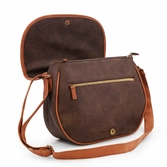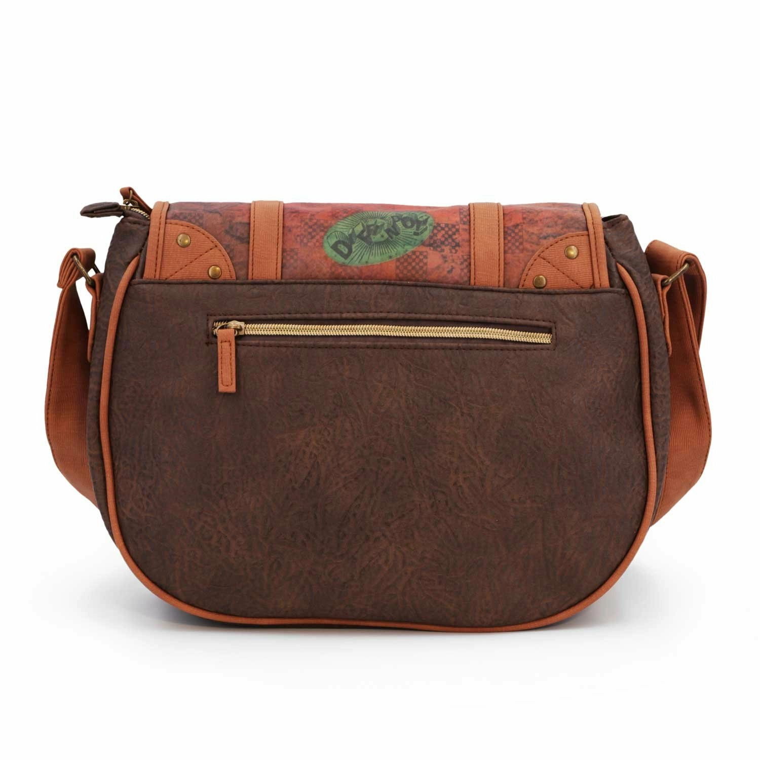 Sac à bandoulière avec rabat et fermeture magnétique, compartiment principal, poche avant et arrière avec fermeture éclair. Doublure intérieure avec poche fermée et compartiments supplémentaires. Bandoulière réglable 130cm de long.