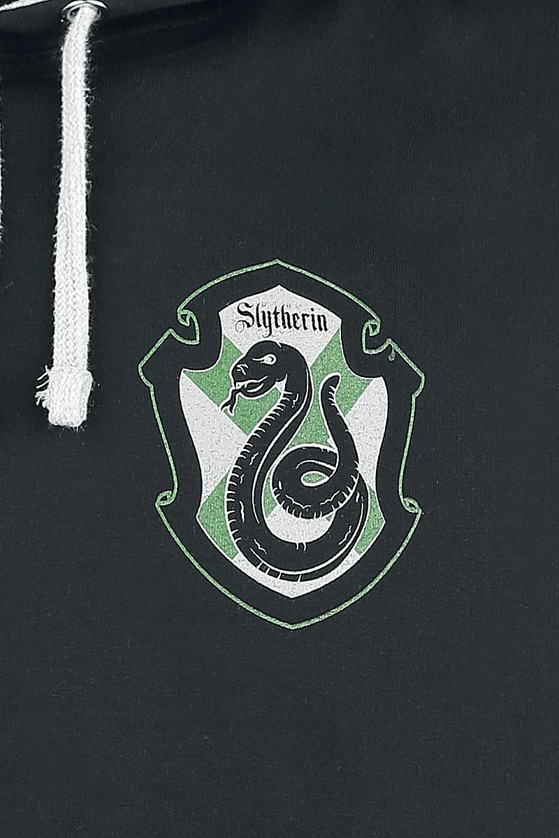 Réflechissez un moment dans quelle maison le Choixpeau Magique de Harry Potter pourrait bien vous mettre. Poufsouffle? Hmm... non, ce sera Serpentard! Le devant de ce sweat-shirt noir à capuche "Slytherin" présente l'emblème de Serpentard sur la poitrine ainsi qu'un grand motif Serpentard dans le dos.