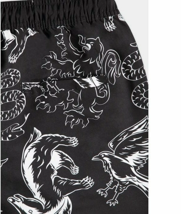 Apportez la magie à la plage avec ce short de bain Harry Potter unique en son genre. Les fans de Poudlard reconnaîtront immédiatement l'impression sublimée sur toute la surface, qui comporte des éléments graphiques représentant les quatre maisons de l'école des sorciers. Une poche à l'arrière et une ceinture ajustable assurent un bon confort.Composition : 100% Polyester