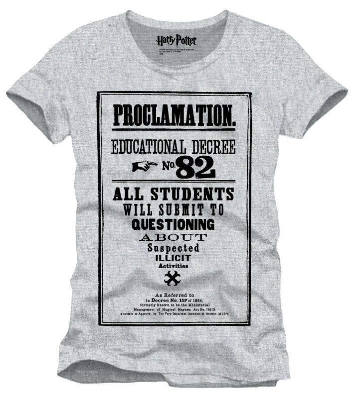 Tshirt homme HARRY POTTER, modèle Proclamation 82.Modèle sous licence 100% officielleCol RondImpression faceModèle disponible en différentes tailles Composition: 100% Coton